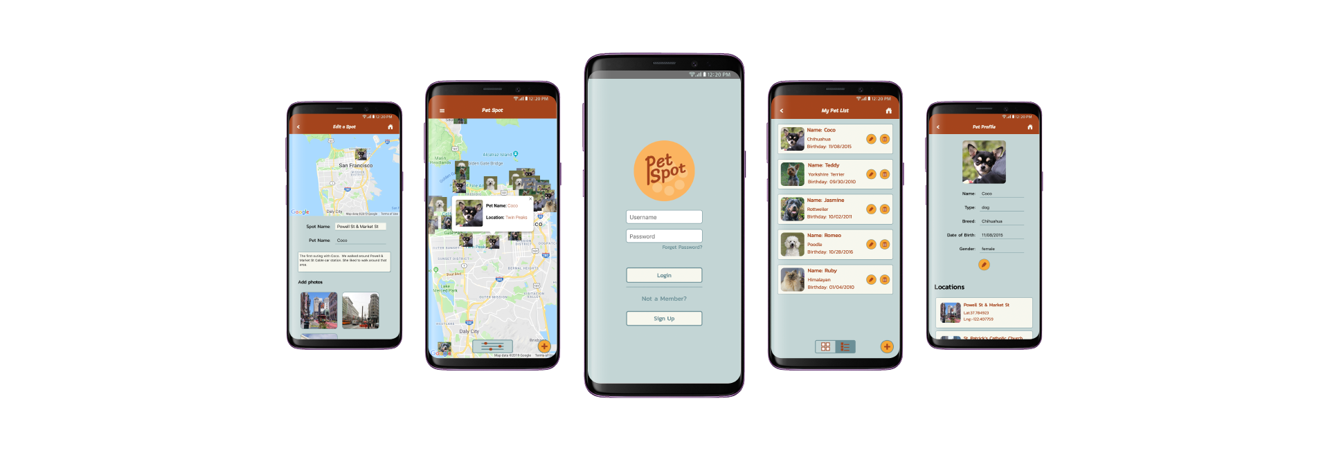 Pet Spot is a mobile application for keeping location diaries and memories of your pet. It is useful for pet lovers who enjoy walking, jogging, and traveling with pets. When the users visit a place with their pets, users can select the location on the map, post photos and write descriptions. Also, users can add pet profiles as many as possible and check location memories for a specific pet with filtering.