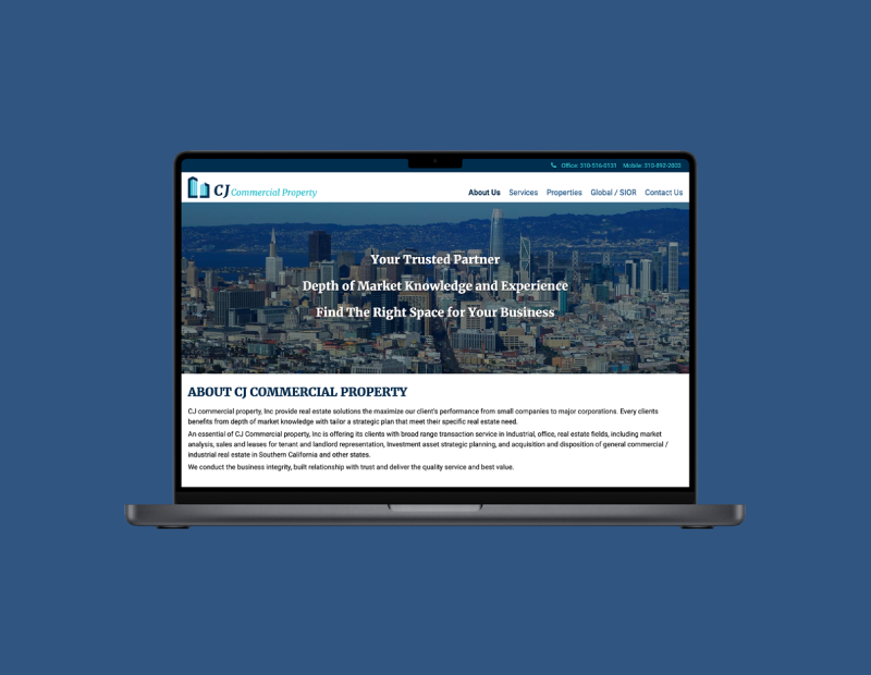 CJ Property CJ Commercial Property Branding & Website Project Role Branding, Web Tools Illustrator, Photoshop, Sublime Text Skills HTML, CSS, Javascript (jQuery)