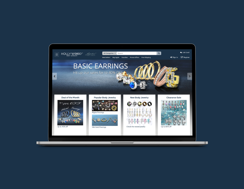 HBJ Hollywood Body Jewelry & Spikes Website Design Works Role Front-end Web Development Tools HTML, CSS, Javascript (jQuery)